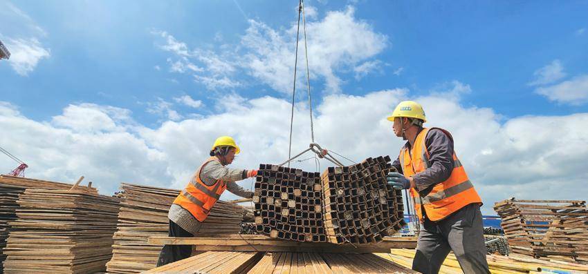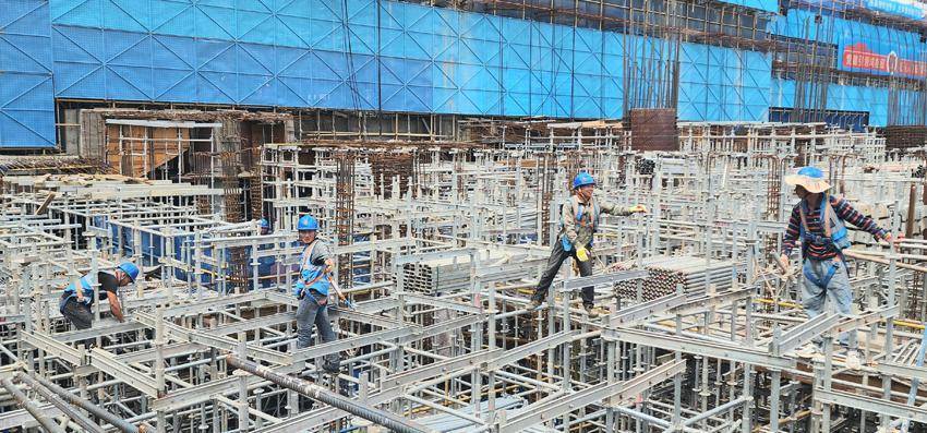秋日的昆明凉风习习,工地里却满是奋进的热浪:起重机巨臂起落,将钢筋精准送向作业面;搅拌车穿梭不停,吞吐着灰白色的混凝土;工人们头戴安全帽、身着工装,弯腰绑扎钢筋、攀爬脚手架、校准模板尺寸,机器轰鸣与吆喝声交织,成了节日里最动人的劳动旋律。
